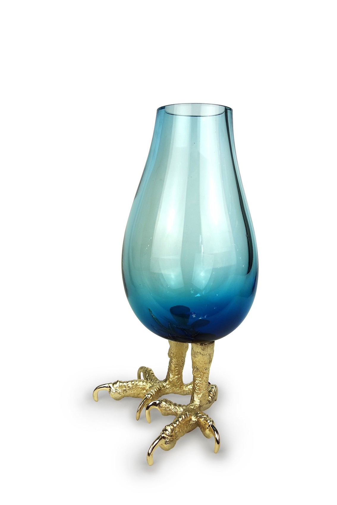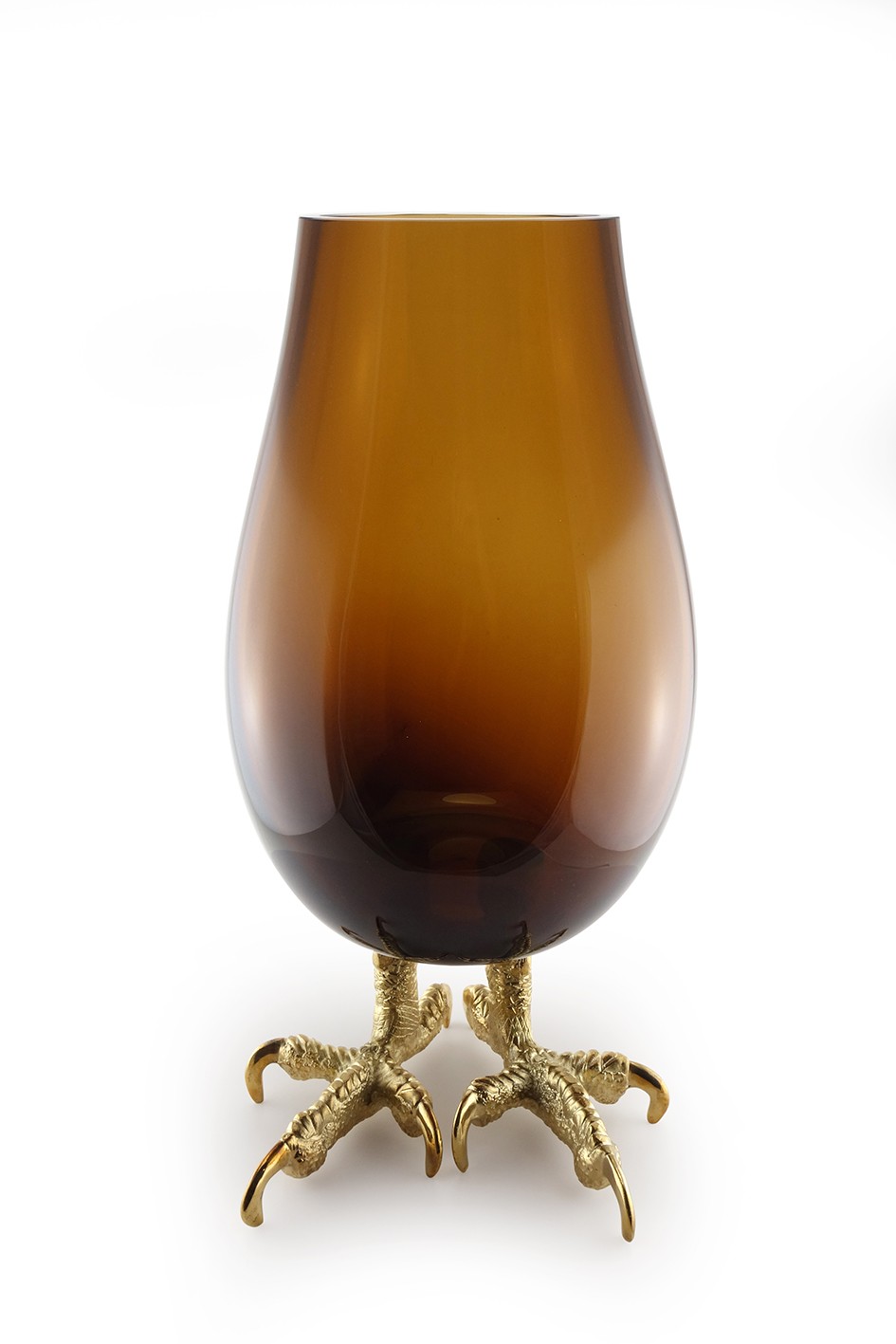 A touch of humor sneaks into the collection ... Offset and disproportionate, IMPERIAL is a vase to apprehend with mischief and fun. Its base is made of legs of exotic golden birds, an invitation to travel.