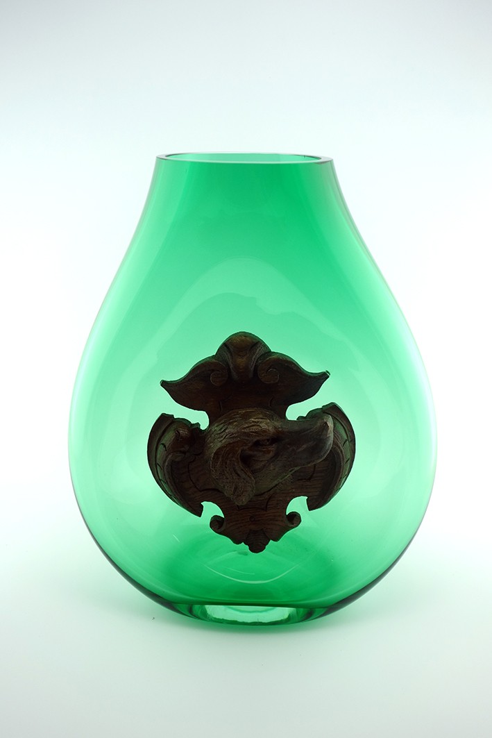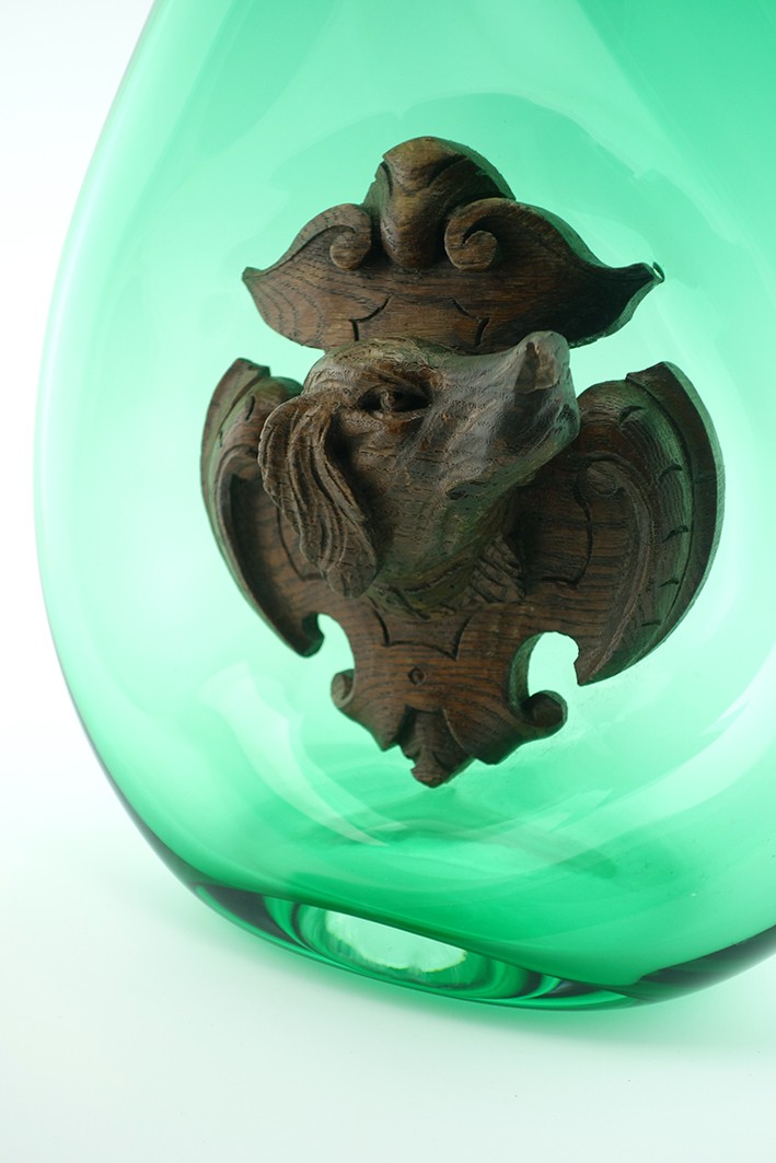 | Composition | Verre Soufflé - Fronton à tête de chien - Bois. Forêt noire - 19e |