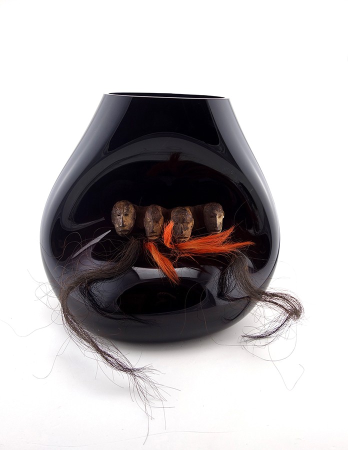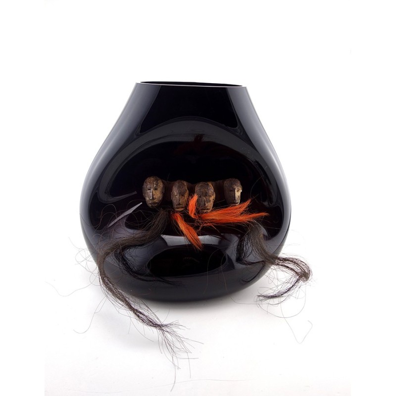 | Composition | Verre Soufflé - Ornement Naga - Bois et fibre - Inde - 20e |
