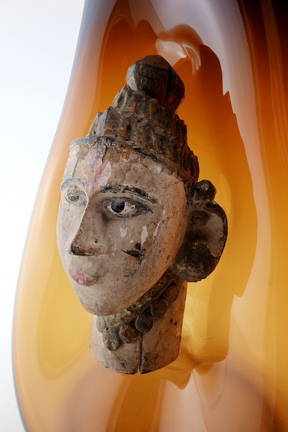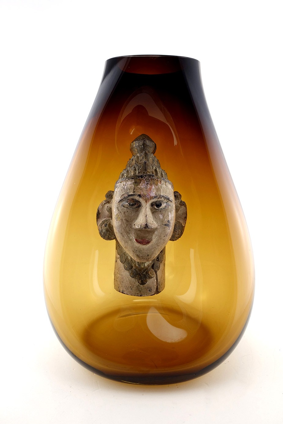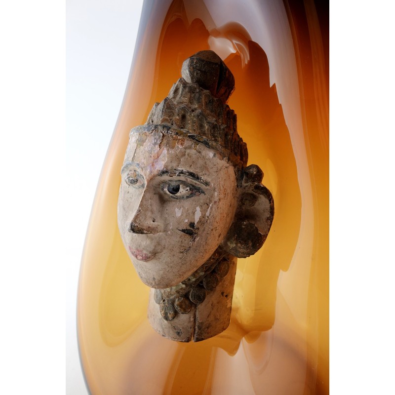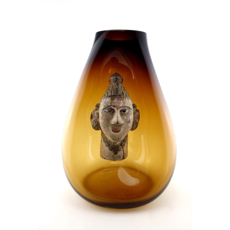 | Composition | Verre Soufflé - Figure de temple - Bois polychrome - Inde - 20e |