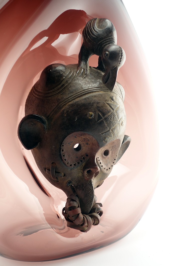 | Composition | Verre Soufflé - Masque Obgoni - Yoruba - Nigeria - Bois, Bronze - 20e |